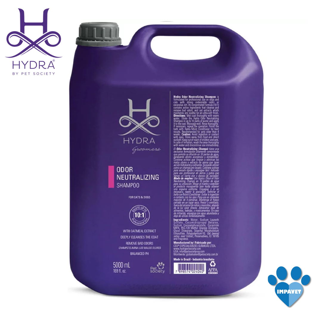 El HYDRA Odor Neutralizing Shampoo es la elección perfecta para aquellos que buscan mantener a sus mascotas limpias, frescas y libres de olores fuertes. Su fórmula profesional, enriquecida con avena, no solo neutraliza los olores sino que también proporciona una limpieza profunda y un pelaje saludable. Añade este champú a la rutina de cuidado de tu mascota y experimenta la diferencia en cada baño.